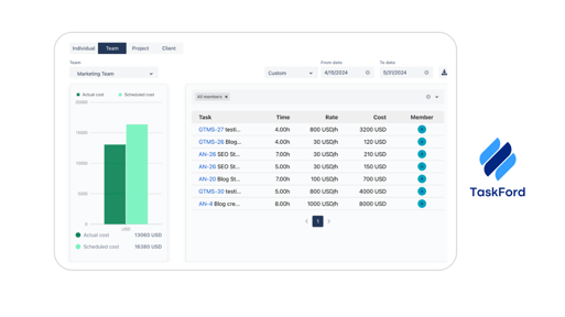 As a comprehensive project management and resource planning platform, TaskFord brings powerful features right to your personal finances. Designed for teams but adaptable for individual use, it helps you treat your budget like a professional project. Here are three key features of TaskFord that align perfectly with budgeting like a project manager, making it different from other project management tools: